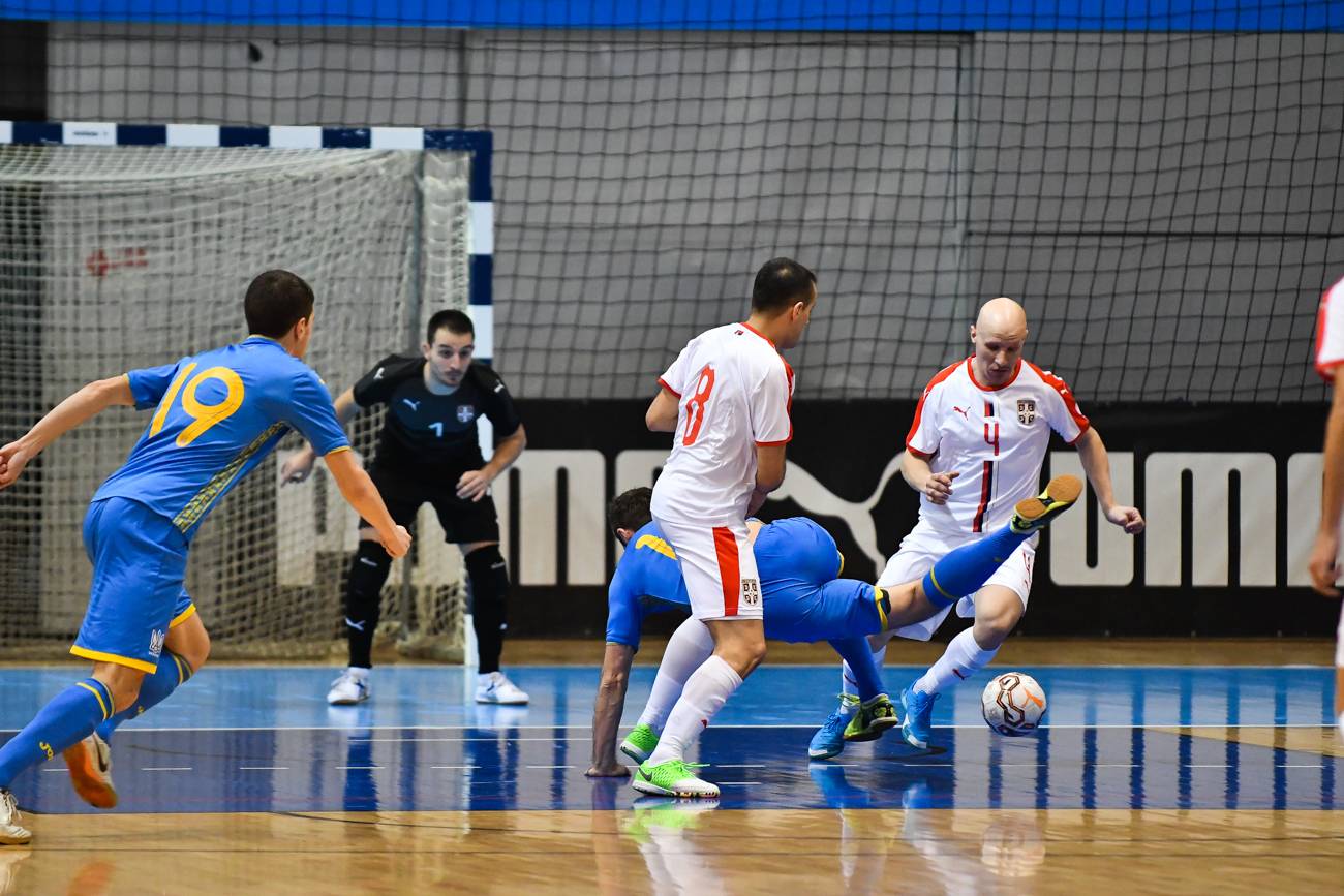 В первом тайме Евгению Иваняку пришлось потрудиться на стартовых минутах, сделав 2-3 серьезных сэйва, но потом «сине-желтые» освоились на гостевом паркете. При небольшом преимуществе по статистике ударов по воротам украинцам ни разу не удалось реализовать свои возможности, в то время как сербы отличились дважды.